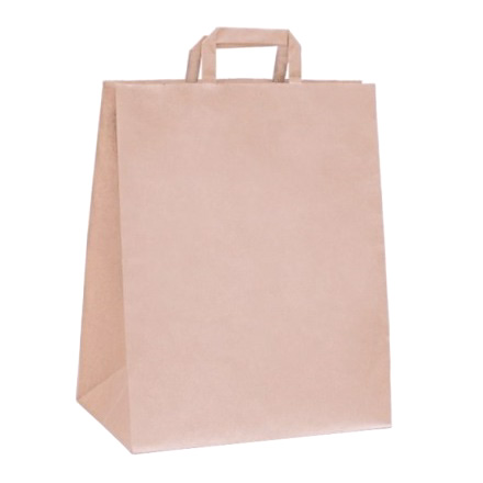 Пакет бумажный с ПЛОСКИМИ ручками 320х200х370 крафт 70 гр 108-035 (ФАСОВКА ПО 50/150 шт.)