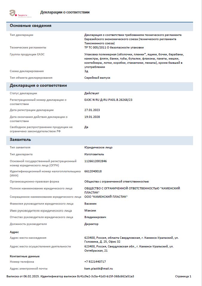 ПЭТ от -40 до +65С