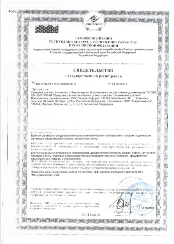 Состав. 5-15% растворители, в том числе изопропанол, 5% АПАВ, 5% парфюмерная композиция, 5% краситель.