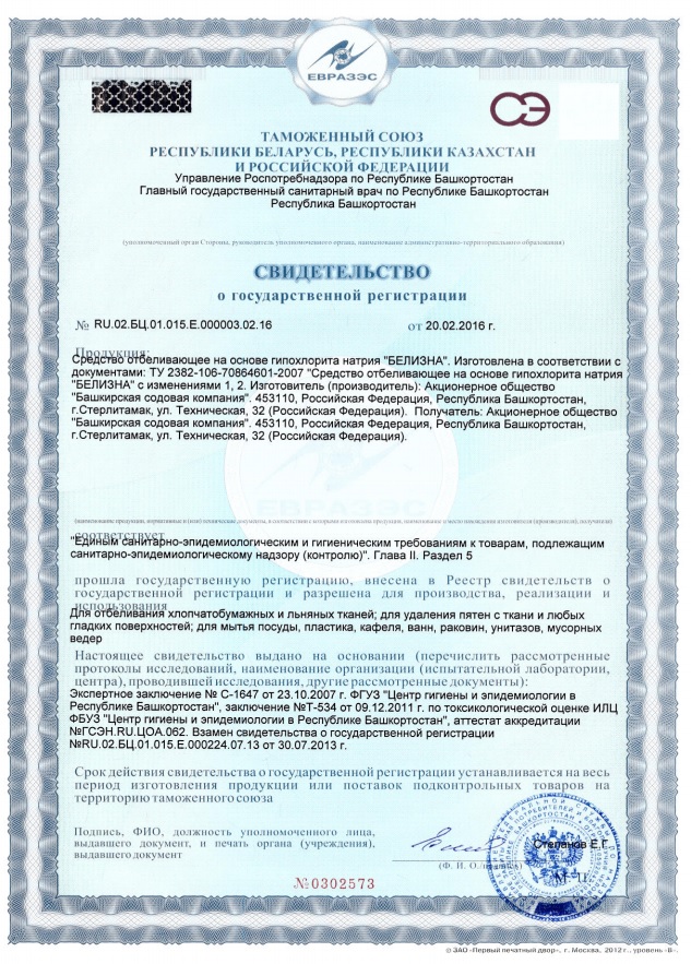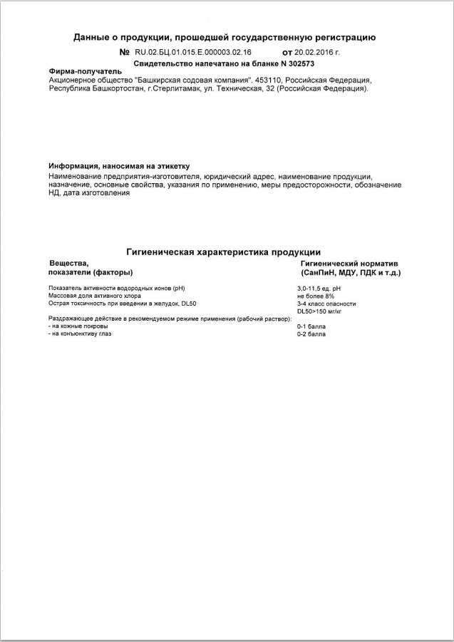 Состав: 5% и более, но менее 15% гипохлорит натрия, вода.