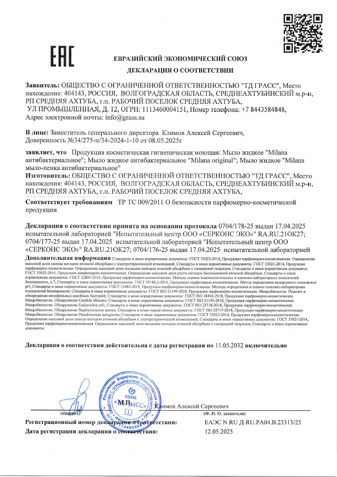 Мыло жидкое 5,0 кг "Milana"антибактериальное "GRASS" (1/4 шт.) 125361