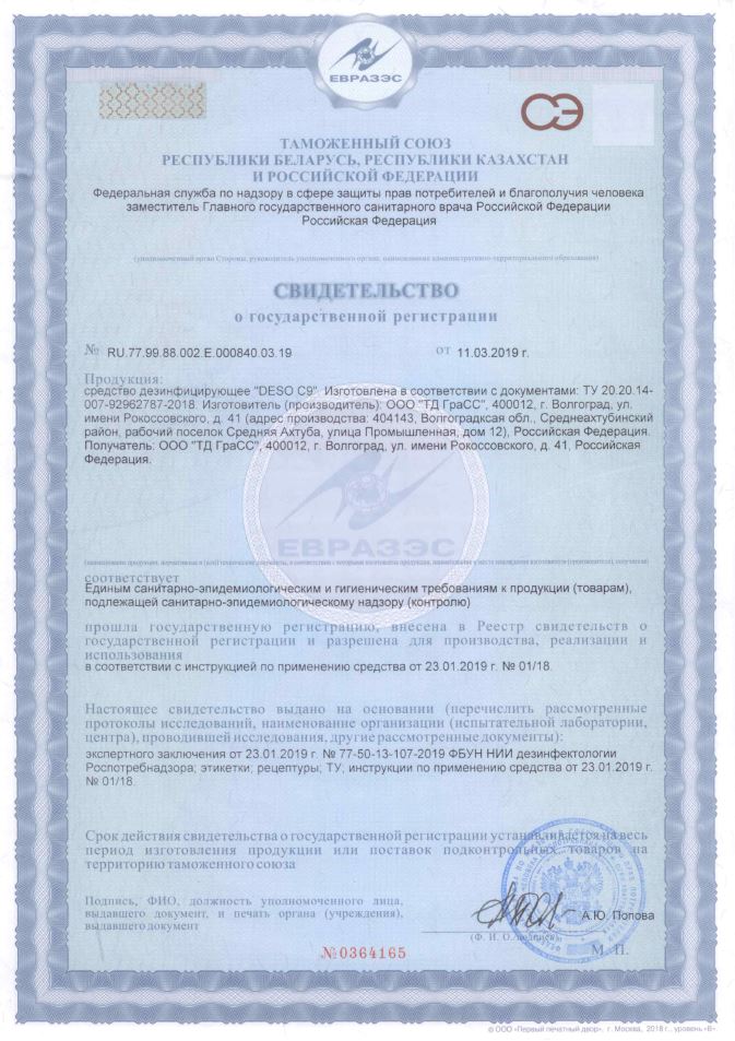 Дезинфицирующее средство, предназначено для гигиенической обработки кожи рук, операционного поля, инъекционного поля, перчаток, экспресс-дезинфекции различных поверхностей, оборудования на предприятиях пищевой промышленности, общественного питания, торговли, парфюмерно-косметических, химико-фармацевтических, биотехнологических и микробиологических предприятиях, в организациях коммунально-бытового обслуживания, образования, культуры, отдыха и спорта, в медицинских учреждениях.
