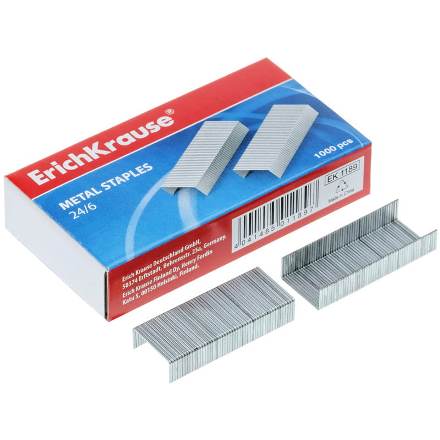 Скобы для степлера №24/6 ''Erich Krause'' никелированные, 1000 шт. 1189 (1/20 шт.)