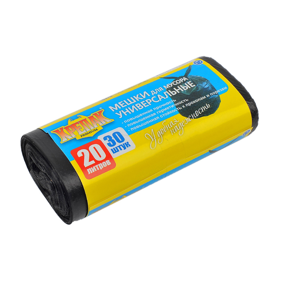Мешок д/мусора ПНД 20 л (30 шт.) рулон черный КРЕПАК (1/50 шт.)