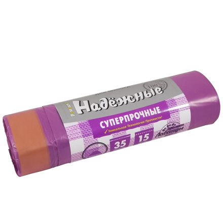 Мешок д/мусора ПСД 35 л (15 шт.) рулон с завязками фиолетовый "НАДЕЖНЫЕ" (1/30 шт.) ВЗ0351515