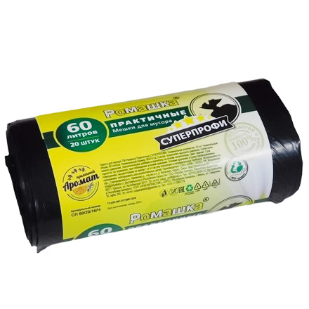 Мешок для мусора ПСД 60 л (20 шт.) рулон "СУПЕРПРОФИ" от производителя "Ромашка" - это решение для тех, кто ценит качество и удобство. Изготовленный из материала ПСД, этот мешок обладает высокой прочностью и долговечностью, что позволяет использовать его для сбора большого объема отходов.