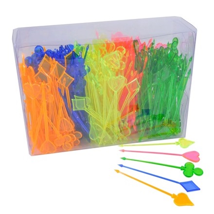 Пики пласт. "Карта цветная" 87 мм (300 шт.) в ПЛАСТ.КОРОБОЧКЕ (1/16 шт.)
