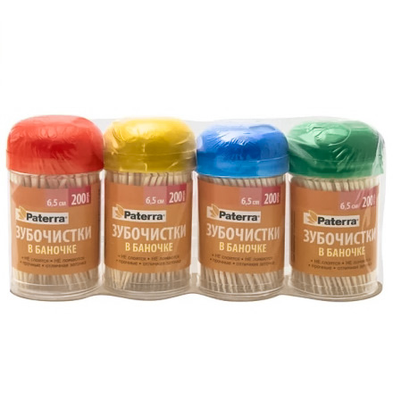 Зубочистки в банке с повор. крышкой (200 шт.) Paterra (4/240 баночек) 401-623