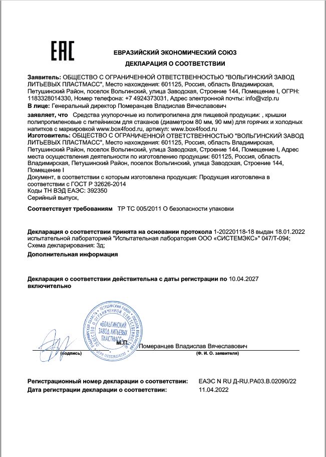 Крышка подходит для использования в кафе, ресторанах, кофейнях и других заведениях общественного питания. Она обеспечивает комфортное потребление напитков и предотвращает проливание жидкости. Она подходит для использования с бумажными стаканами диаметром 90 мм. Также применяется в торговых вендинговых автоматах.
