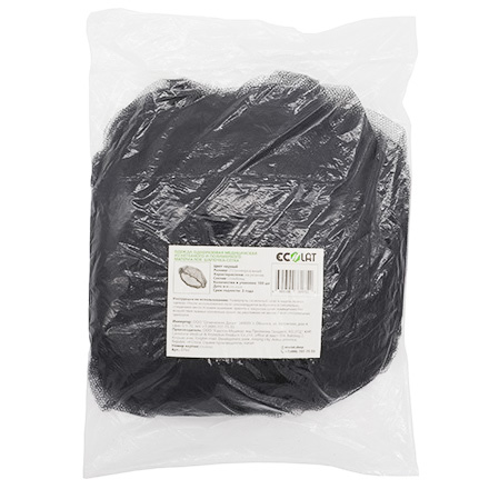 Шапочка-берет из чёрной сетки при помощи специальной резинки надёжно держится на голове, благодаря универсальному размеру способна защитить даже пышную прическу. Шапочка-берет успешно применяется в парикмахерских, SPA-центрах, банных комплексах, гостиницах и бассейнах, а также на пищевых производствах