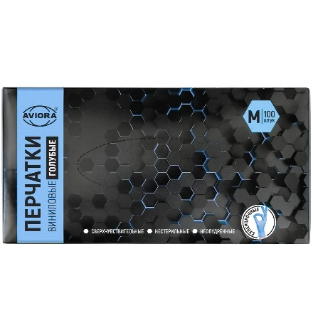 Перчатки виниловые неопудренные ГОЛУБЫЕ "AVIORA" M (100 шт.) (1/10 шт.) 402-916