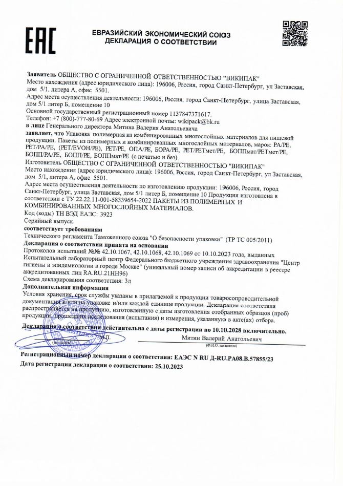 Количество пакетов в упаковке: 100 шт.