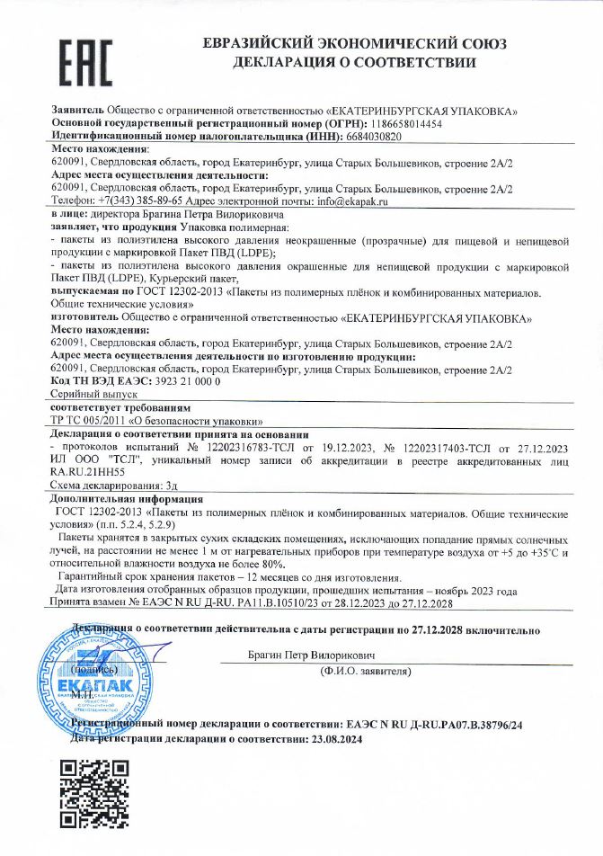 Количество пакетов в упаковке: 100 шт.