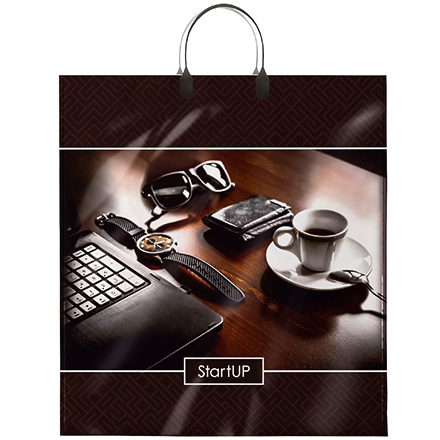 Пакет с пластиковой ручкой ПВД 40х44 (100 мкм) "Стартап" лам. (10/100 шт.) Интерпак