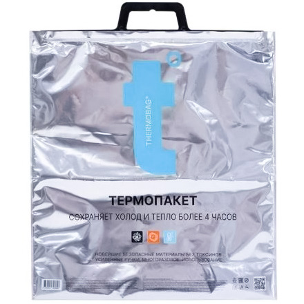 Термопакет от производителя сохраняет температуру до 3 часов. Внешний слой термопакета выполнен из металлизированной пленки (триплекс), а средний слой представляет собой теплоизоляционный материал из пенополиэтилена толщиной 1000 мкм, который обеспечивает основную защиту от потери тепла. Внутренний слой изготовлен из полиэтилена высокого давления толщиной 40 мкм.