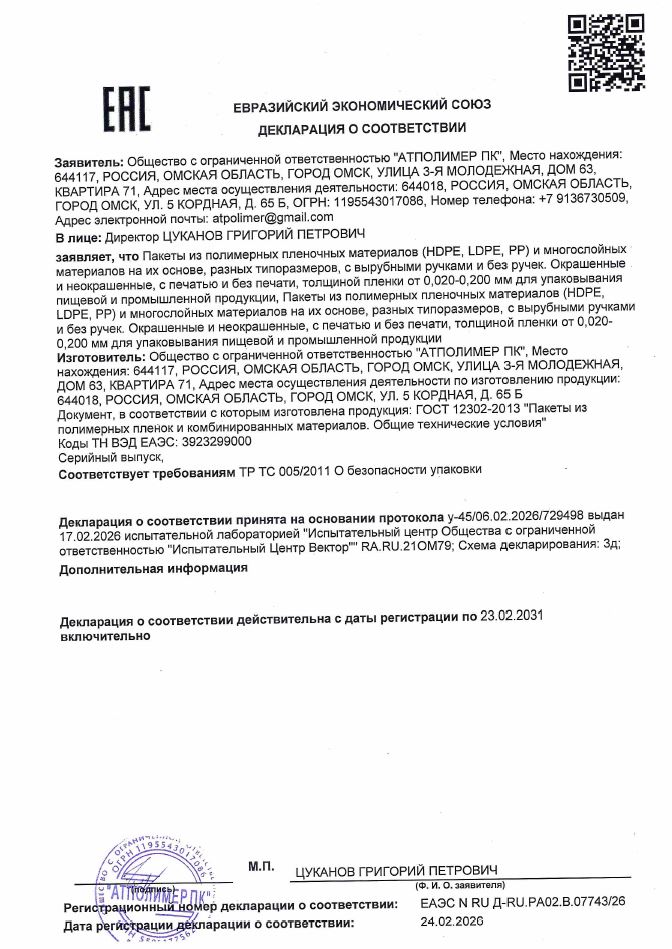 Пакет вакуумный 400х600, 65 мкм PET/PE (100/700 шт.)