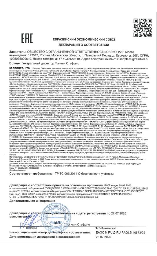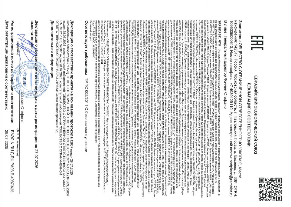 Количество тарталеток в транспортном коробе: 38400 шт.