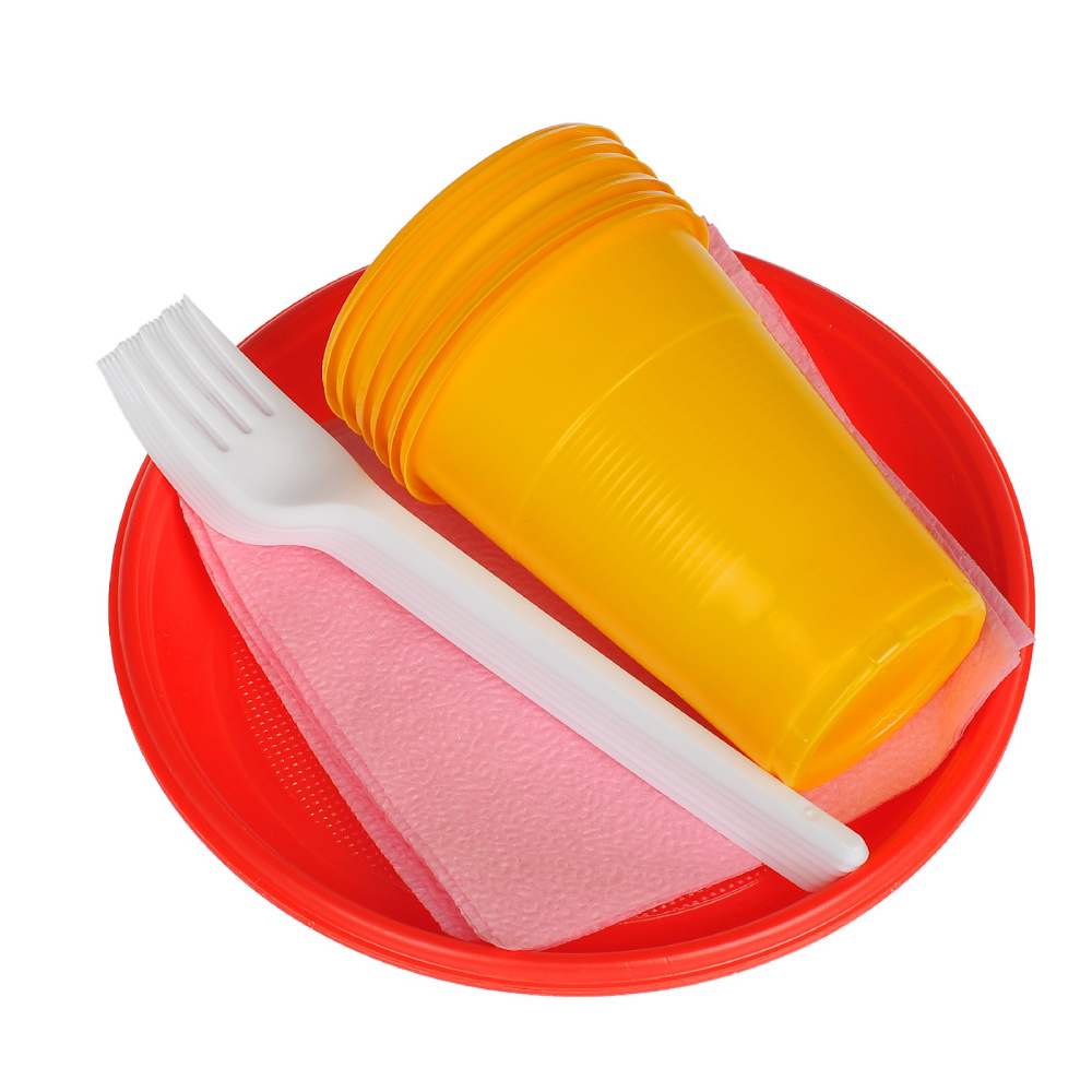 Набор для пикника — это решение для тех, кто ценит удобство и комфорт во время отдыха на природе. Этот набор включает в себя все необходимое для организации пикника тарелка d-170 мм 6 шт., вилка 6 шт., стакан 200 мл 6 шт., салфетка (1 сл.) 6 шт.